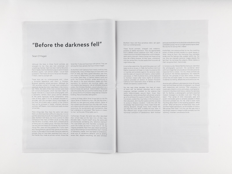 The authors reflect upon the work from very different perspectives - a personal account of Northern Irish school days in the 1960s; the use of child imagery during the Troubles; and a reflection upon childhood, time, and gender in the context of Northern Ireland.